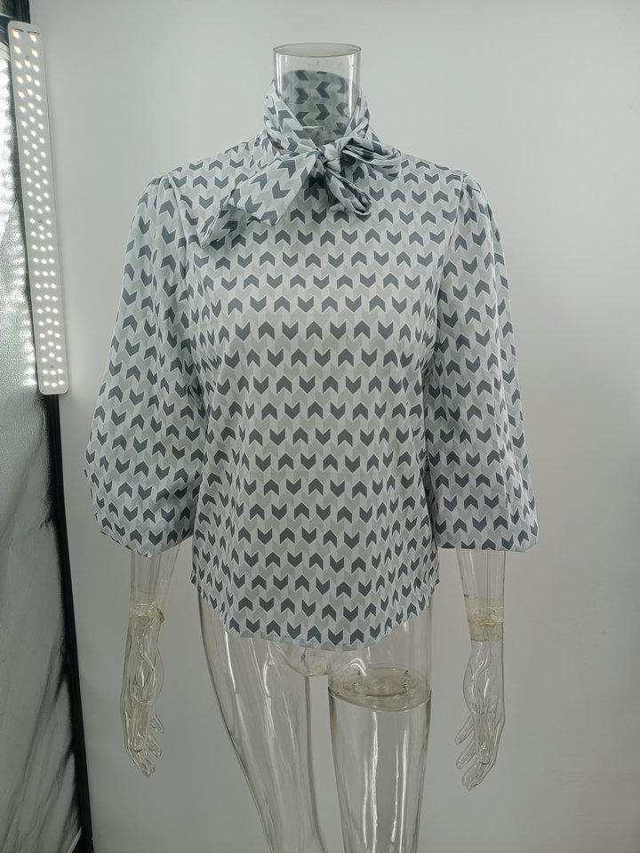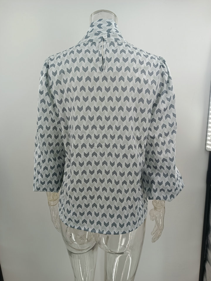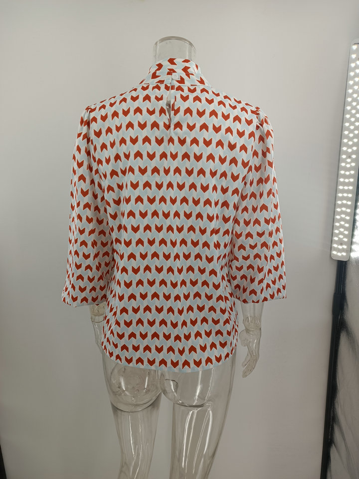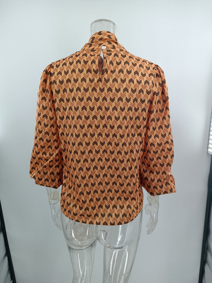 Pullover Long Sleeve Stand Collar Printed Loose Blouse